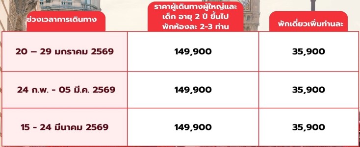 10 วัน 7 คืน (มกรา 2569 - มีนา 2569)