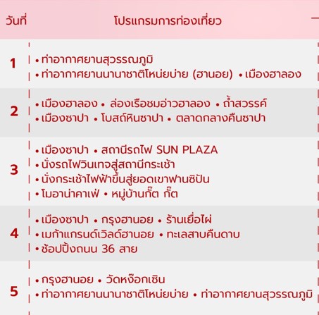 กำหนดการเดินทาง ทัวร์เวียดนามเหนือ ฮานอย ฮาลอง ซาปา ฟานซีปัน 5 วัน 4 คืน -VN  2569