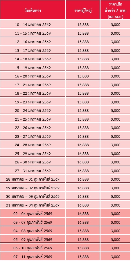 5 วัน 4 คืน (มกรา 2569 - มีนา 2569)