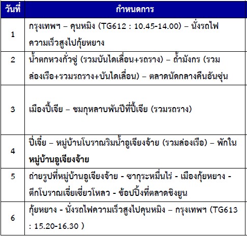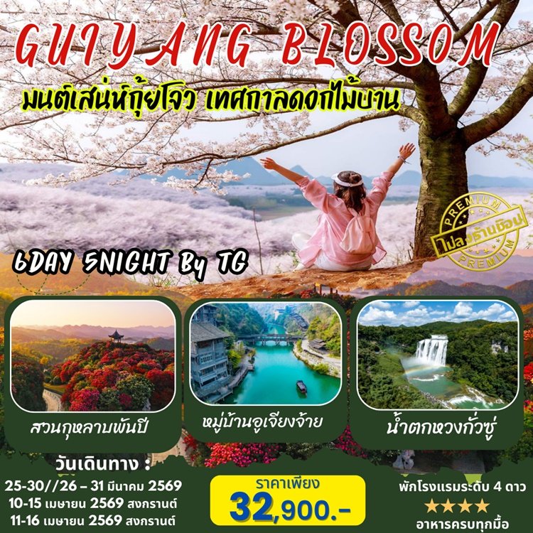 กำหนดการเดินทาง ทัวร์คุนหมิง กุ้ยหยาง กุ้ยโจว เทศกาลดอกไม้บาน ไม่ลงร้าน 6 วัน 5 คืน -TG  2569