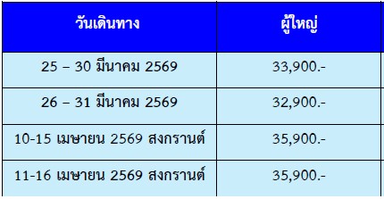6 วัน 5 คืน (มีนา 2569 - สงกรานต์ เมษา 2569)