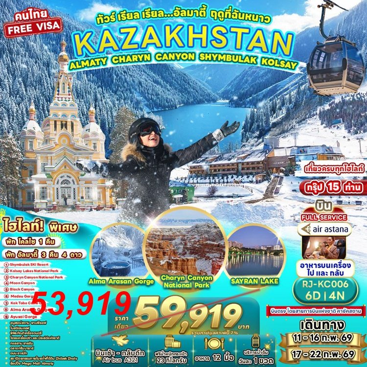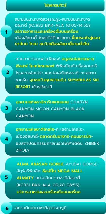 กำหนดการเดินทาง ทัวร์คาซัคสถาน อัลมาตี้ 6 วัน -KC 2569