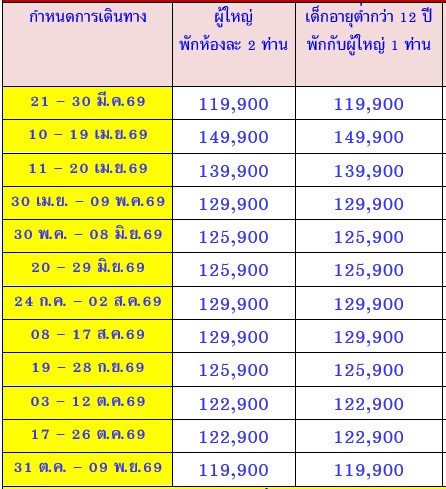 10 วัน 7 คืน (มีนา 2569 - ตุลา 2569)