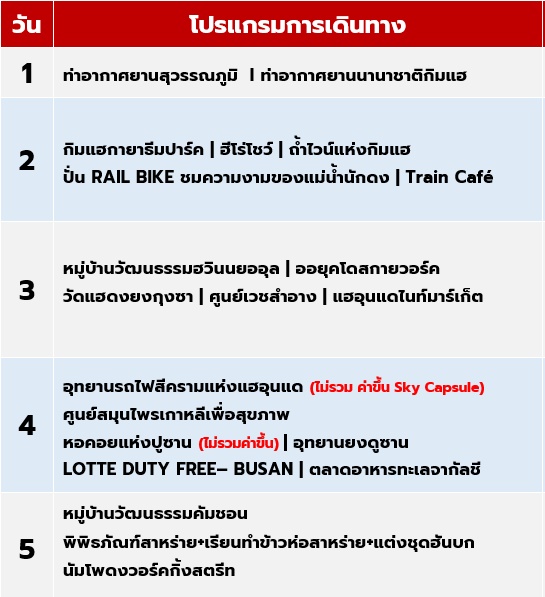 กำหนดการเดินทาง ทัวร์เกาหลี ปูซาน Busan Sea Sand Breeze 5 วัน 3 คืน -BX/7C 2569