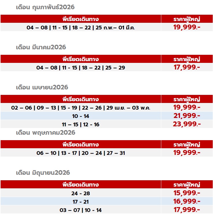 5 วัน 3 คืน (ธันวา 2567 - ปีใหม่ 2568 - มกรา 2568)