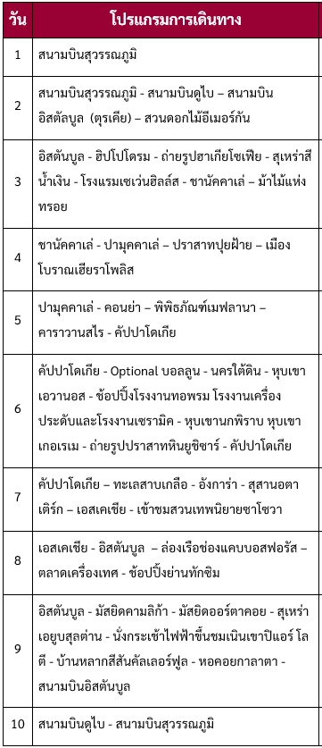 กำหนดการเดินทาง ทัวร์ตุรเคีย ชมทิวลิป และปราสาทเทพนิยายซาโซวา พักโรงแรมสไตล์ถ้ำ 1 คืน 10 วัน -EK 2569