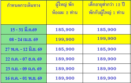 17 วัน 14 คืน (มีนา 2569 - ตุลา 2569)