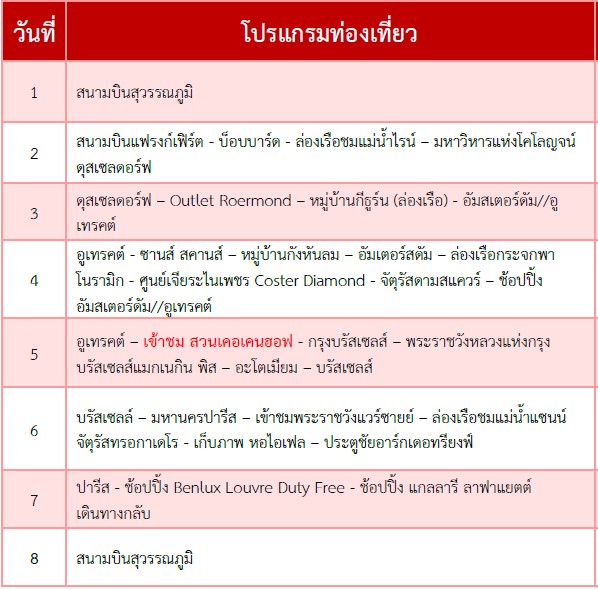 ไฮไลท์ ทัวร์เคอเคนฮอฟ เยอรมนี เนเธอร์แลนด์ เบลเยี่ยม ฝรั่งเศส 8 วัน 5 คืน -QR