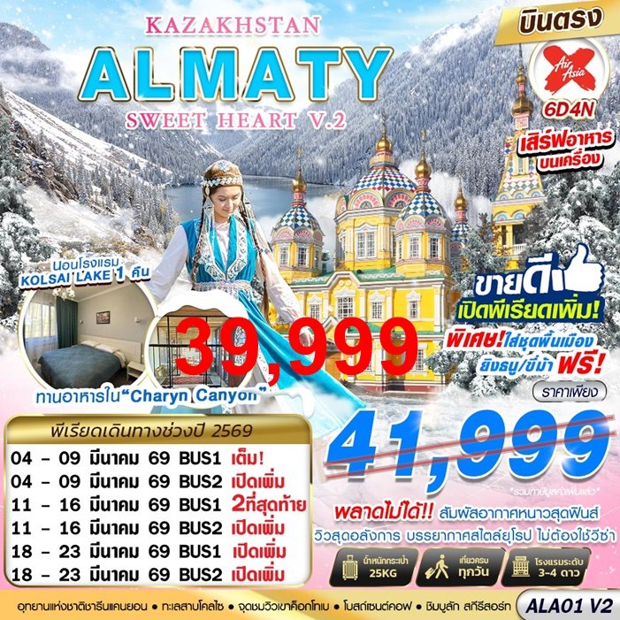 กำหนดการเดินทาง ทัวร์คาซัคสถาน อัลมาตี้ V2 6 วัน -XJ 2569
