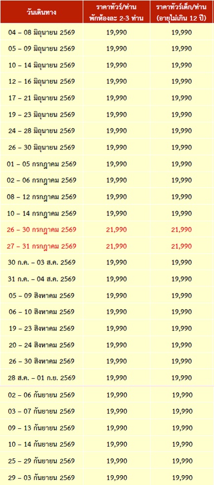 5 วัน 3 คืน (มิถุนา 2569 - กันยา 2569)