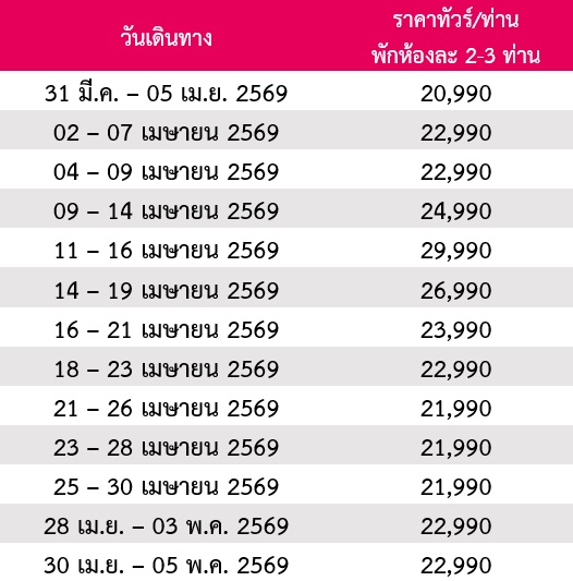 6 วัน 5 คืน (มีนา 2569 - เมษา 2569)