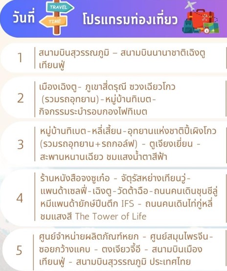 กำหนดการเดินทาง ทัวร์จีน เฉิงตู สี่ดรุณี ปี้เผิงโกว พักหมู่บ้านทิเบต 5 วัน -VZ  2569
