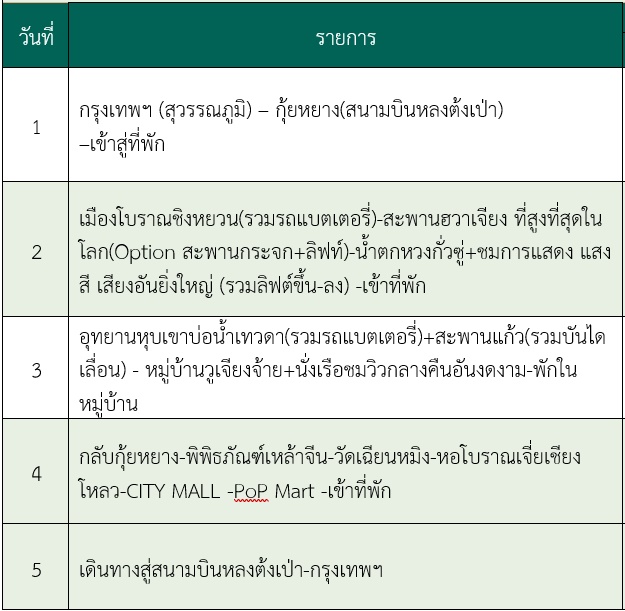กำหนดการเดินทาง ทัวร์จีน กุ้ยหยาง สะพานฮวาเจียง น้ำตกหวงกั่วซู่ 5 วัน -AQ  2569