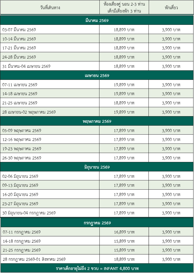 5 วัน 4 คืน (มีนา 2569 - กรกฎา 2569)