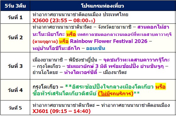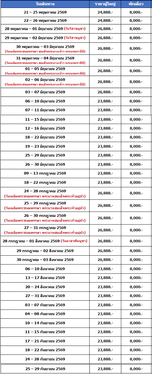 5 วัน 3 คืน (พฤษภา 2569 - กันยา 2569)
