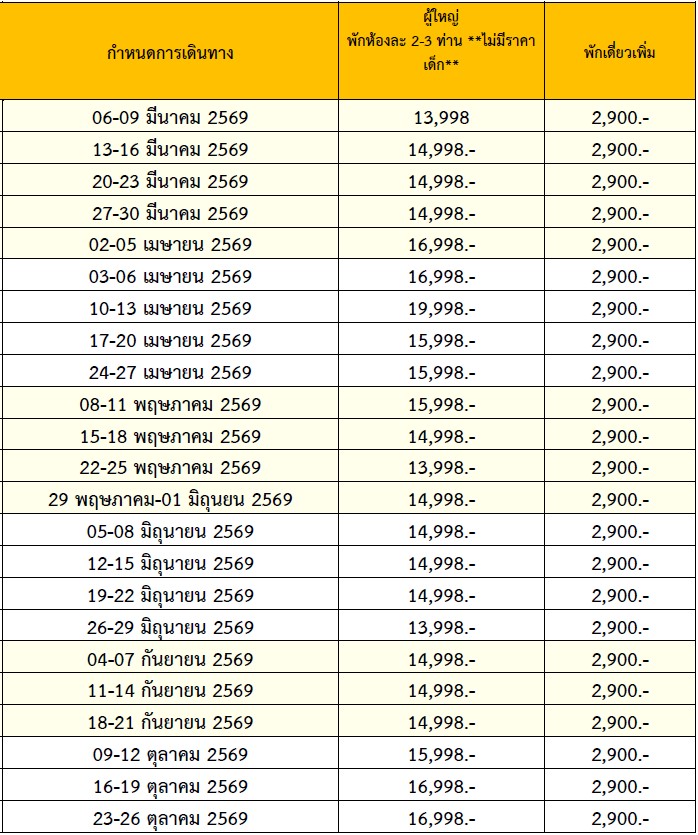 4 วัน 2 คืน (มีนา 2569 - ตุลา 2569)