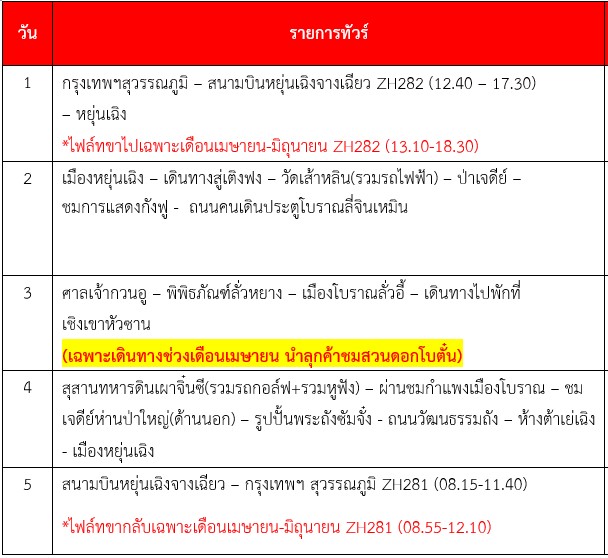 กำหนดการเดินทาง ทัวร์จีน ซีอาน หยุ่นเฉิง ลั่วหยาง สุสานทหารจิ๋นซี ไม่ลงร้าน 5 วัน -ZH 2569