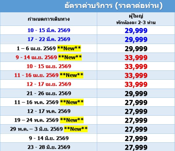 6 วัน 5 คืน (เมษา 2569 - มิถุนา 2569)
