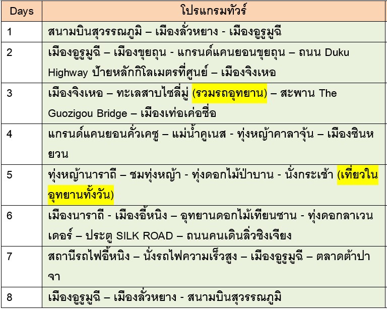 กำหนดการเดินทาง ทัวร์ซินเจียงกลาง อี้หนิง นาราถี ทะเลสาบไซลีมู่ แกรนด์แคนยอนคั่วเคซู อูรูมูฉี 8 วัน 6 คืน -UQ 2569