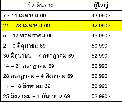8 วัน 6 คืน (เมษา 2569 - สิงหา 2569)