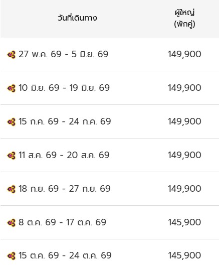 10 วัน 7 คืน (พฤษภา 2569 - ตุลา 2569)