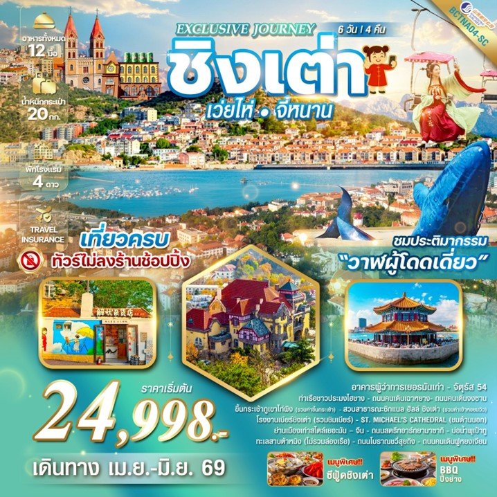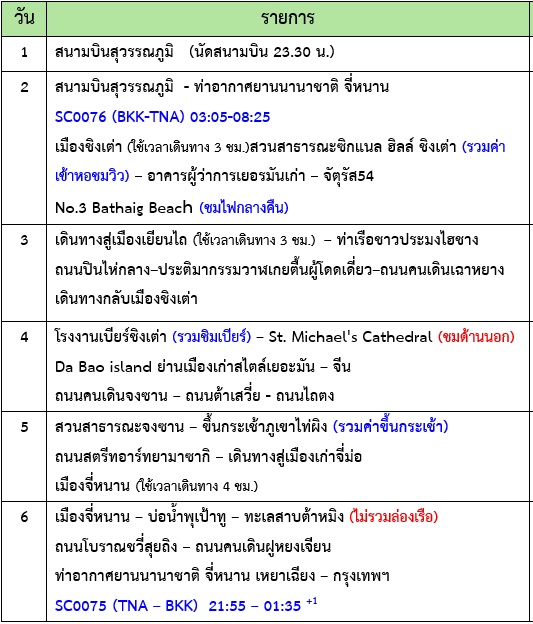 กำหนดการเดินทาง ทัวร์ชิงเต่า เว่ยไห่ จี่หนาน ไม่ลงร้าน 6 วัน -SC 2569