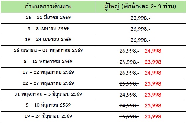 6 วัน 4 คืน (เมษา 2569 - มิถุนา 2569)
