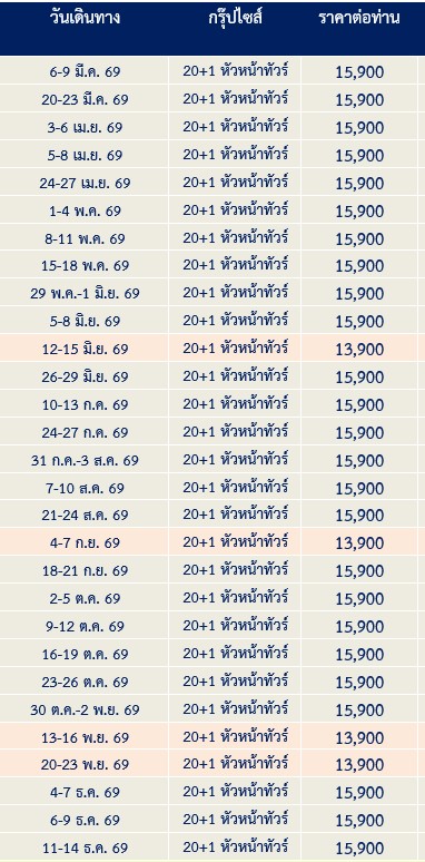 4 วัน 3 คืน (เมษา 2569 - ธันวา 2569)